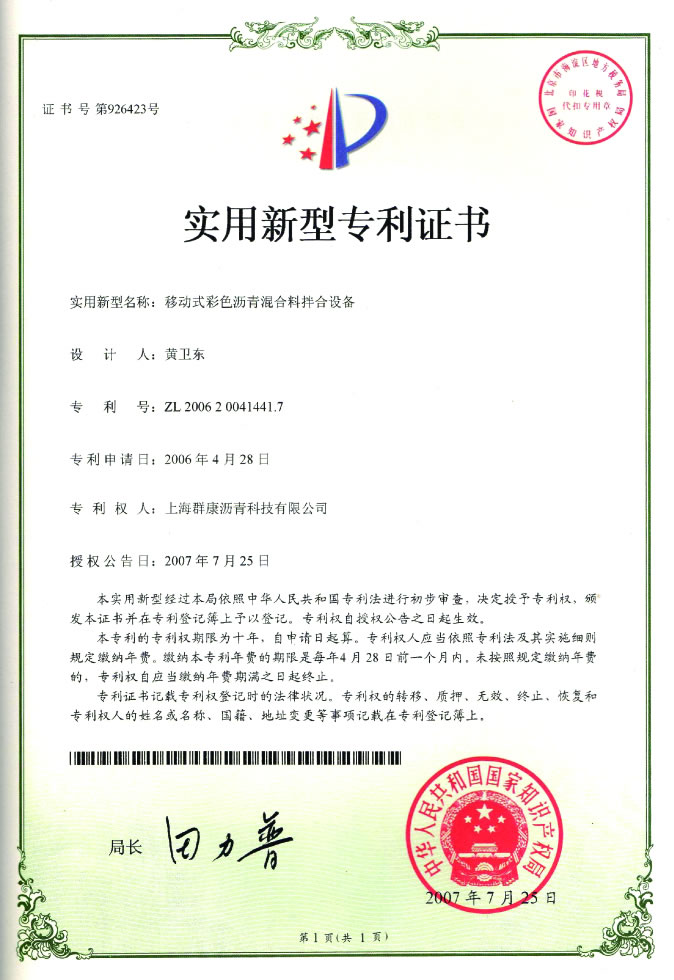 Colored asphalt mixing equipme